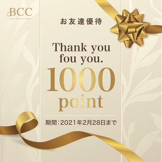 今、BCCアプリに登録したお客様には1,000ポイントをもれなくプレゼント!ポイントはすべてBCCの負担ですので、どんどん宣伝して新規会員を増やしましょう!